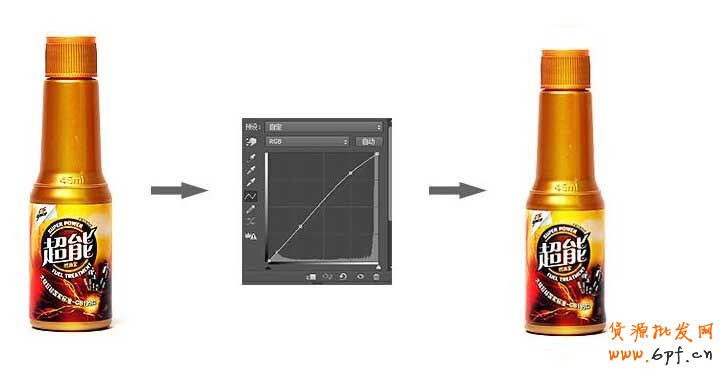 8、新建一個(gè)曲線調(diào)整圖層,進(jìn)一步調(diào)節(jié)瓶子的亮度。