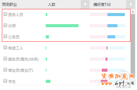 可以得知文胸類目下,是以18-34歲,這一年齡段的女性用戶為主的,以醫務人員、白領、公務員這三類職業的喜好在網上購買文胸,其中以白領的人數最多。而這部分用戶中,有兩個突出的特點分別是:愛美、愛吃零食。