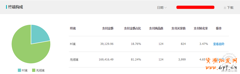 店鋪近30天成交金額,其中無線端占比高達81%,并且無線端的支付轉化率也是明顯高于PC端。