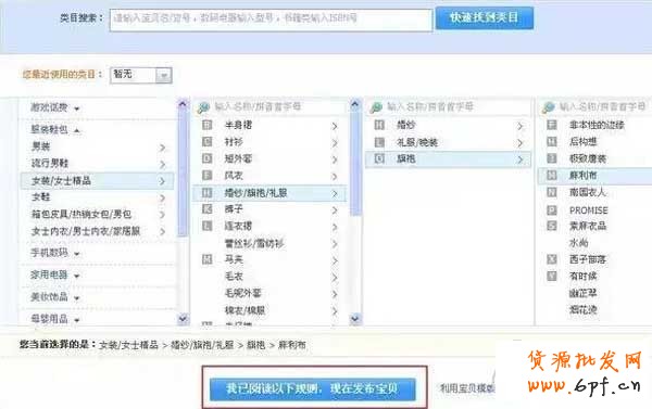 三、在選擇商品類目的時候,一定要正確,否則有較大幾率被判虛假交易,萬事俱備后,點擊閱讀以下規則,發布寶貝。