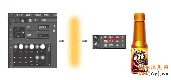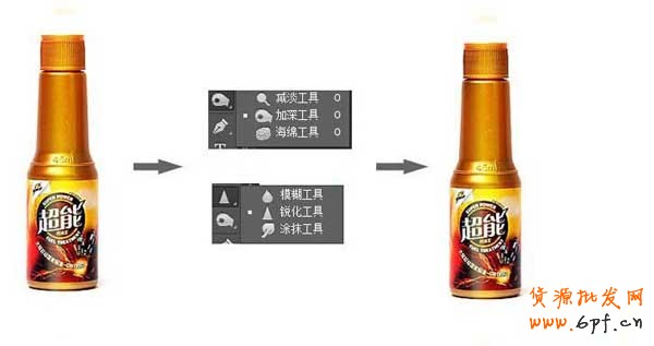 11.把瓶子復制一層,可以使用銳化工具和加深工具刻畫瓶蓋的。