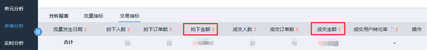 3、拍下、成交、購物車等多維分析