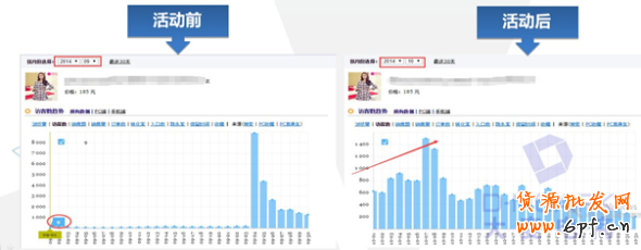 大家看看下面的這一組數據,活動前后的對比,這款連衣裙時上了一個淘外的折800活動。活動前,寶貝日均流量還不到10個,活動當天給寶貝帶來了8000多個流量,活動為期1周。在活動期間,寶貝的轉化也非常不錯,所以活動結束后,寶貝的流量基本維持在400以上。從10個到400個,大家可以看到活動給自然搜索是帶來多大的幫助!