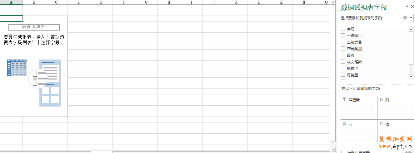 這個時候需要干的活很簡單,就在右邊數據透視表字段那里,把品牌拉到行,把地區拉到列,成交筆數拉倒數值,就可以了,