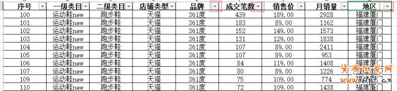 先來看這么一個數據源,目的是做一個簡單的交叉分析,就是想要看一看,在各個品牌下,不同地區的成交筆數的一個匯總。