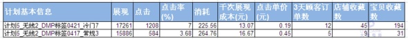 上圖可見,這些標(biāo)簽的組合的效果,點(diǎn)擊單價不到0.2元,點(diǎn)擊率達(dá)到了7%,收藏成本僅有不到0.5元。