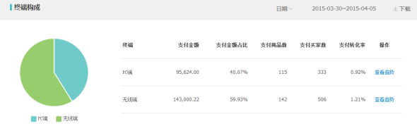 除了以上說的要關注的店鋪內容,大家還需要留意下店鋪哪個端口轉化較好,便于預熱及聚劃算時我們投放做出相應效果預判,通過生意參謀我們可以清楚的知道該女鞋店較有轉化優勢的端口是無線端,如圖4,所以在預熱時我們就可以有意識的在無線端加大預熱。