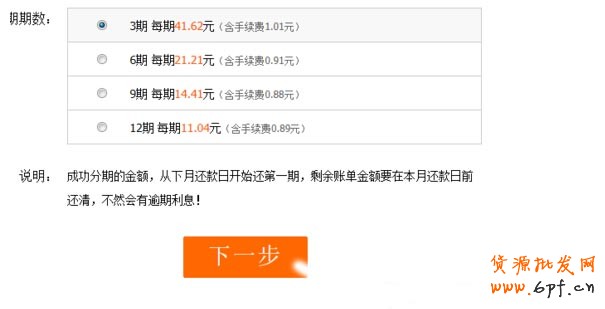 進入之后就可以看到分期的這個頁面,然后選擇分期的期數,點擊進入下一步。