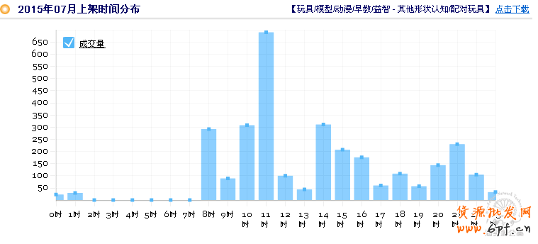 通過生意經查看“ 玩具/模型/動漫/早教/益智”類目近3個月的數據,上午和下午的時間段,行業的成交量是比較好的,尤其是早上11點的時候是高峰期,那么我們店鋪可以依據這些數據做好寶貝上下架的調整,直通車也可以配合店鋪在這個時間段加大力度測試。