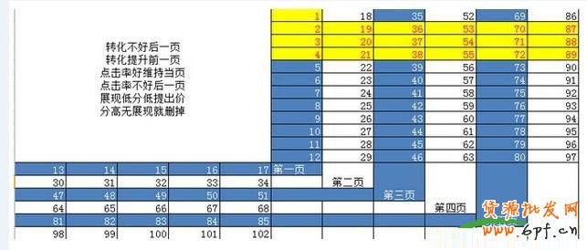 我們知道現在點擊率對直通車質量得分的影響占比很高,我們可以將直通車寶貝展示的位置優化到黃金車位上,具體什么是黃金車位呢?請看下圖:
