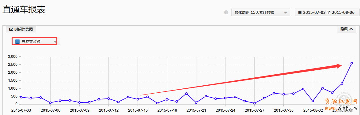 再回到直通車查看引進流量帶來寶貝成交的詳情,可以看出引進的流量,花費少,能帶來一定的間接成交,提高總成交金額,從一款寶貝的推廣帶動店鋪整體的轉化。