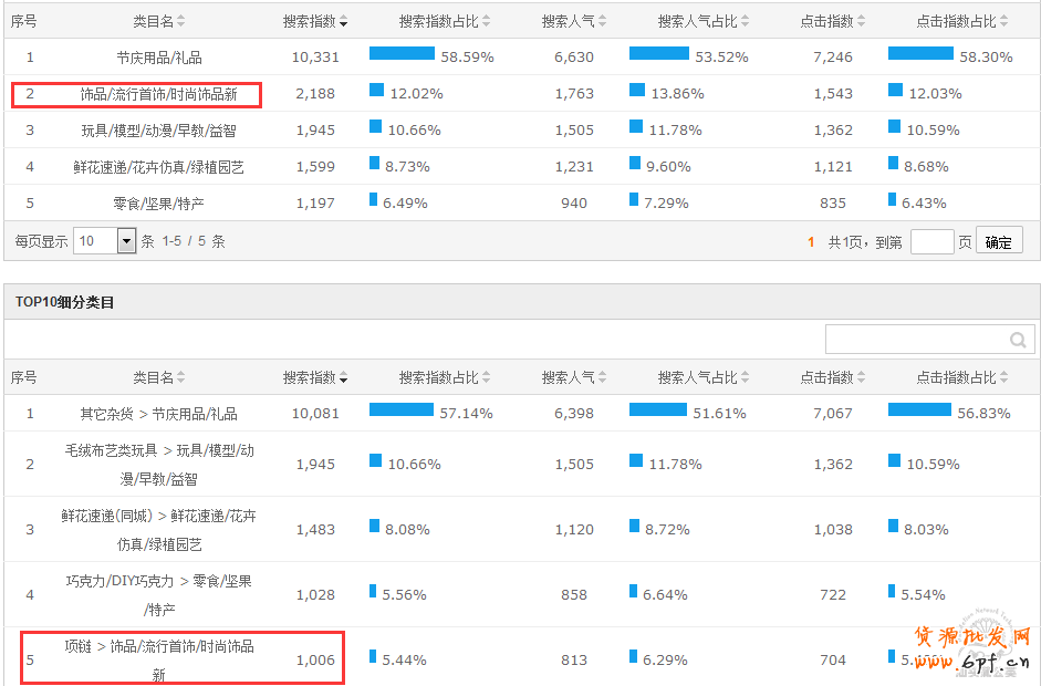 當然,如此浪漫甜蜜的日子,禮物禮品肯定是主力軍,受歡迎度是最高的,也是搜索量最大的。這個不用多說,大家也都明白。對比top5類目和細分類目,可以發現,飾品行業的整體搜索量是居高的,但是細分類目里面,占據較大席位的卻是毛絨玩具和鮮花以及巧克力,由此可見,行業受歡迎程度高,并不代表細分類目里面也相應高。有經營多種不同產品類型的店家,一定要注意這點,做好店鋪產品結構優化推廣,發揮優勢。