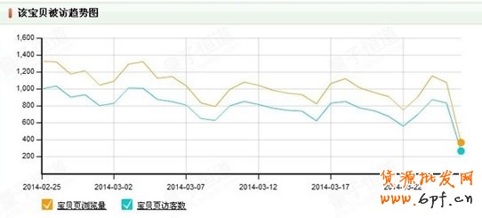 1丶觀測寶貝一段時間內的流量變動情況,可以在量子恒道中的寶貝被訪詳情頁中看到,能夠一目了然看到寶貝每天的流量變動趨勢。如果哪幾天的流量下降較大,要及時查找原因來解決。