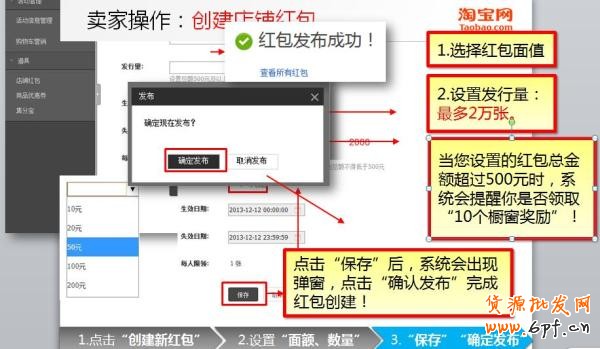 店鋪紅包的面額有10元、20元、50元、100元和200元五種可選。單個賣家同時只能生成1種店鋪