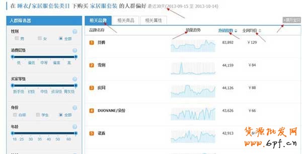 我們往下看,依舊要注意統計時間,和字段。這里有趨勢,熱銷指數和均價。是相關品牌的情況。