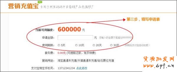 2)登錄淘寶貸款頻道申請營銷充值寶;