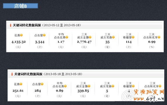 如上兩個(gè)店鋪直通車的主要問題在哪里?是流量,是點(diǎn)擊率還是轉(zhuǎn)化率?