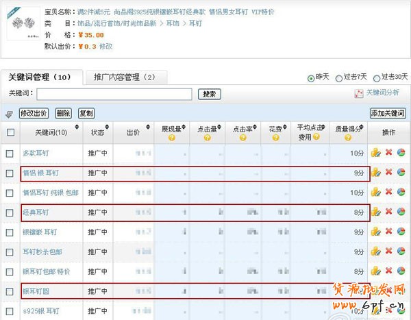 比如我有一款925銀耳釘,原價40上下,活動價19.9,核心關(guān)鍵詞是耳釘。如果搜“耳釘”,可以看到各種價位的耳釘都有。在呈現(xiàn)的頁面中,我們的產(chǎn)品完全被淹沒了,翻N頁也很難看到,就算質(zhì)量得分不低,出價很高,展現(xiàn)的位置很靠前,那也是高不成低不就:跟底價產(chǎn)品比沒人家實惠,跟高端產(chǎn)品比沒人家上檔次。就算在同檔次的情況下比實惠,在同價格的情況下比品質(zhì),買家也很難分辨,而且要進一步思考,費時間的事一般人不干,第一反應(yīng)沒被吸引就直接拉過去了。