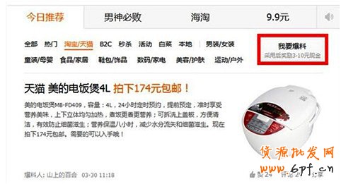 一淘網(wǎng)的活動模式和其他平臺的活動模式不一樣。參加活動不需要報名,完全是靠爆料,任何一個都可以爆料,成功的就可以上首頁。