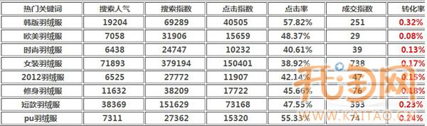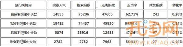 有人可能會提出質疑,你剛發個那個【韓版羽絨服】轉化很高,比你說的短款這些屬性詞還高,為什么呢?再看一組數據: