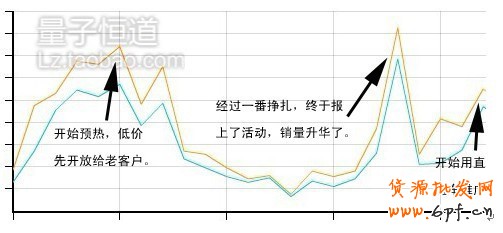 流量的引入可以從2個方面入手:1丶淘寶的銷售活動,如淘金幣丶天天特價丶vip等,這些活動不需要你費用上的大筆投入,但能為你的寶貝快速聚集人氣,累計銷量;2丶付費流量,當然還是我們說的那老三樣,直通車丶鉆展丶淘客。記住,這個時候,你的寶貝如同一個進入青春發育期的少年,非常需要營養,給予它足夠的營養,以后才能長得強壯,讓我們來看看量子的圖表。