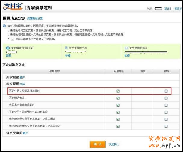 買家付款后賣家收不到消息提醒,建議賣家可以登陸我的支付寶—提醒消息定制中,找到賣家提醒版塊,在“買家付款,有交易待發(fā)貨時”后面選擇阿里旺旺或郵件打勾就會有提醒了哦~