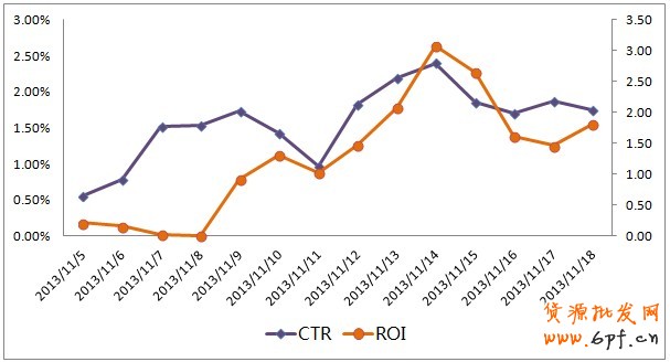 從2013年鉆展數據來看,余熱期的流量恢復到雙11前的水平,但還是維持在比較高的水平,說明雙11的熱度還在延續。cpc降低到10月初的水平,可以用較低的成本拿到流量;從CPM和ROI來說,由于流量競爭下降,競價成本大大降低,另外投產比持續上升,回復到9月底的水平。