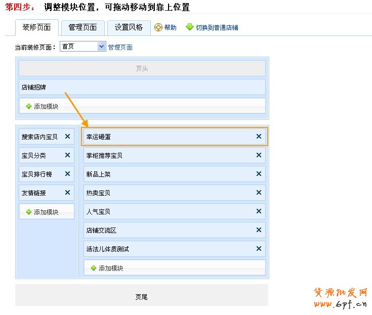 第四步: 調整模塊位置,可拖動移動到靠上位置