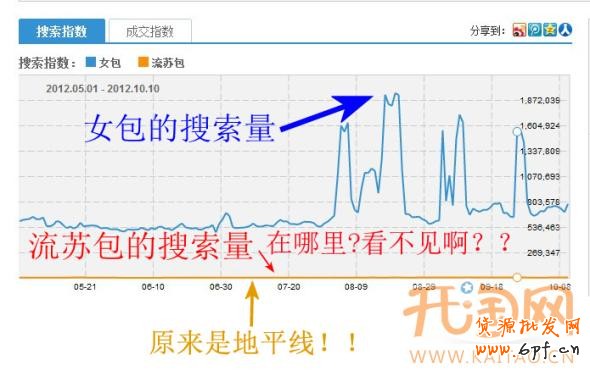 下圖是關(guān)鍵詞 女包 VS 流蘇包 的搜索量對比
