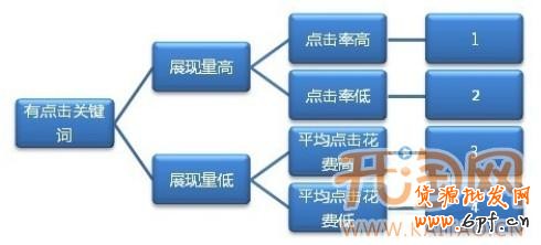 關注點擊率,如點擊率高于關鍵詞點擊率,則這部分詞保持不動;如點擊率低于關鍵詞點擊率,則考慮相關性,如相關性好,可以考慮提升出價,如相關性不好,則可以替換關鍵詞。
