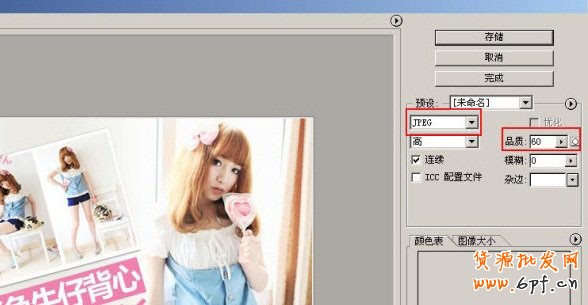用Photoshop打開需要優化的圖片,在文件菜單中選擇存儲為Web所用格式,文件格式選擇JPG,品質調整到60,這個值可以在圖片不失真的情況下自行設置,然后點存儲就OK了。當然還有很多工具軟件有類似功能,有些可以做批處理,可以自己去了解下。