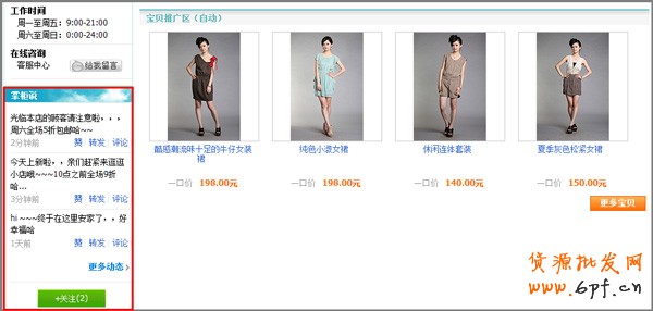 下圖就是在店鋪前臺頁面展示的掌柜說信息~~~