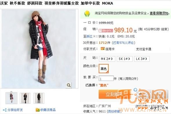 這件是去年賣得比較好的羽絨服。讓我們看看這位賣家在他的商品描述里面做到了什么。