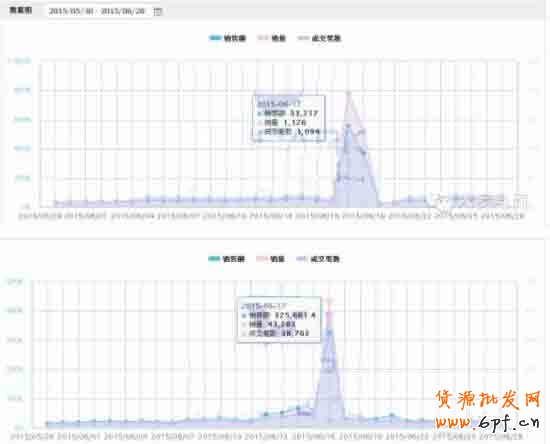 看上圖,為同一類目下的兩款產品,這個是淘搶購活動當天的成交情況,為了保證對比的可參考性,選擇了時間段差不多的統一下細分類目下的兩款寶貝,成交卻呈現出較大的差距。那么我們應該選擇什么樣的產品報名活動呢?