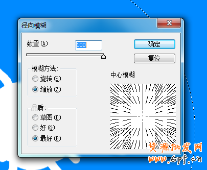 5、看下過是不是出來了,但效果好像還不是很明顯,這時候我們使用ctrl+f命令重復一次徑向模糊命令,效果是不是明顯了。