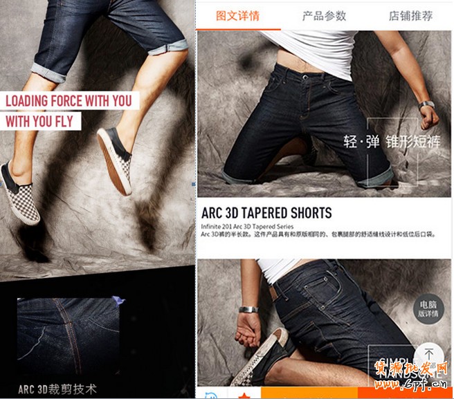 優(yōu)化的時候,在詳情頁第一屏采用了海報圖吸引注意,通過放大的細節(jié)圖和局部模特圖來增加視覺飽和度,只保留重要信息,針對性的加大字體凸顯,單從視覺上看,效果有翻倍了。