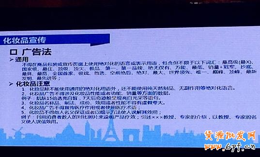 第一,化妝品除不能使用通用的“國家級”、“最高級”、“最佳”等詞外,也不能用“純天然”、“無副作用”等絕對化用語。