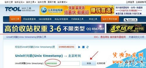 5、把”1440550200“這串數字粘貼到unix時間戳轉換工具里面,點擊轉換,就可以看到這串數字所對應的真實時間了