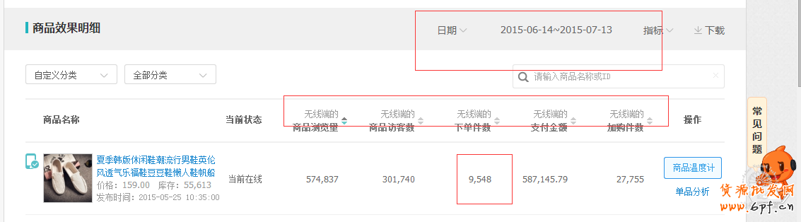 該寶貝為豆豆鞋男款,剛推廣時銷量基礎為63單,推廣時間從6月14推廣到現在7月14,利用直通車無線端引流,帶動店鋪寶貝的自然搜索和成交,隨著無線端流量的增大,現總成交為6000件,時間為一個月。數據如下: