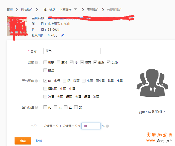 2. 天氣人群的設(shè)定:在設(shè)定的時候我們要思考的是我們針對的是哪些地方的客戶,想要讓哪些人看到我們的寶貝,都是可以通過設(shè)定進行精準的地域投放。