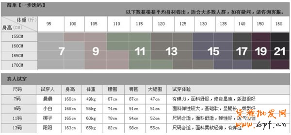 ③尺碼描述:列表顯示出該商品的尺碼之外,最好有模特的身材參數真人試穿記錄感受。