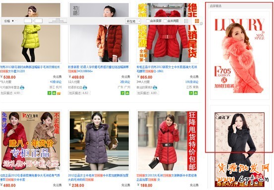 3、淘寶客搜索結果頁面的右側單品下方“店家精選”區域。