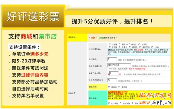 如何快速提升店鋪動態評分和優質評語?促銷優惠手段的設置很重要,好評送彩票不但能讓你開拓新客戶,也能維持老客戶!