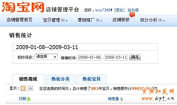 五、直通車: 很多人說做“淘寶直通車”沒有多大用處,特別是新開店。我則不然,我是在兩顆心時就加入“直通車”的,它給我在初開店時帶來了不少的人氣。特別是在春節(jié)前后情人節(jié)前后的那段時間里,做了直通車后我店輔里每天的訪問量都在500左右!這是個很大的量啊!我原來是開實體店的,深明:“客流即錢流”的道理。每天 500的訪問量,這其中只要有百分之三四的成交就相當(dāng)?shù)目捎^了!但是現(xiàn)在就沒有這么好了,每天訪問量也就在在200至300左右。 做直通車廣告的效果就是提高你店里的訪問量,訪問量上去了就說明看到過你東西的人多了,廣告的效果永遠是滯后的,只要你的店鋪跟產(chǎn)品夠吸引人,價格也合理,生意一定會慢慢好起來的,不要太急。做直通車主要是設(shè)定好你寶貝的關(guān)鍵詞。建議大家多去聽課,多讓自己的小二幫你檢查設(shè)置是不是有問題,如果運用得當(dāng)效果還是有的,錢也不會燒的很多。(建意新手一定要限制花費,不然多少錢都會丟進去的。)