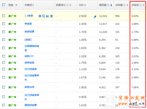 以關鍵詞“ 法蘭絨被套”為例 ,可發現影響點擊率幾個要點: