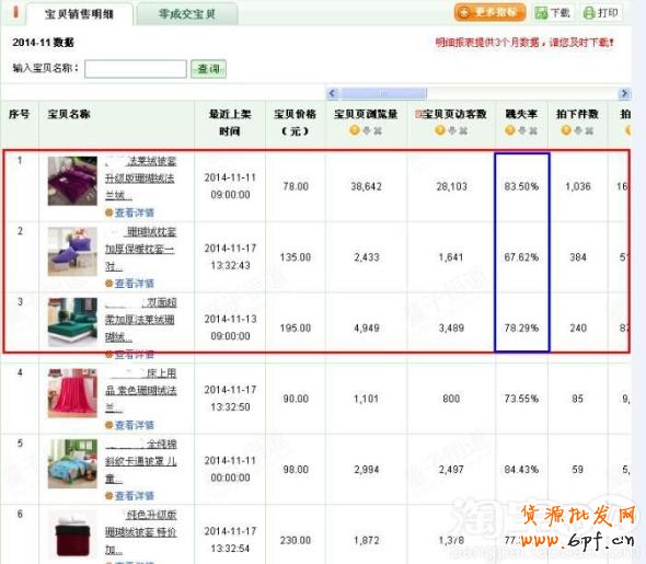 3)轉化率高的寶貝