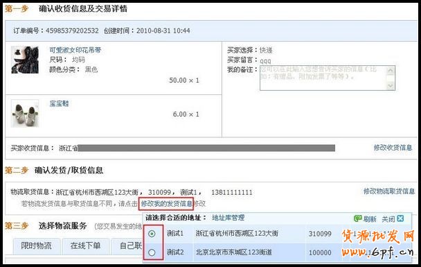 若物流發(fā)貨信息與取貨信息不同,請點(diǎn)擊“修改我的發(fā)貨信息”,點(diǎn)選需要更改的發(fā)貨信息即可。
