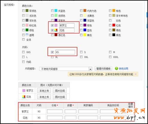商品多個(gè)價(jià)格的設(shè)置,是需要有顏色、尺碼等套餐信息的支持,如果您的商品有顏色屬性,即可以勾選對(duì)應(yīng)的顏色或尺碼屬性,方可設(shè)置不同的價(jià)格,如圖: