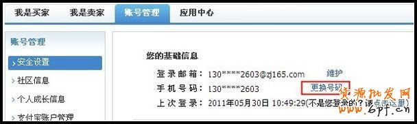 進入“我的淘寶”—“賬號管理”—“安全設(shè)置”頁面點擊“更換號碼”