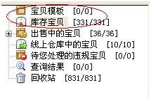 2.1.1在助理的左邊的目錄樹(shù)中選中“寶貝模板”或“庫(kù)存寶貝”。